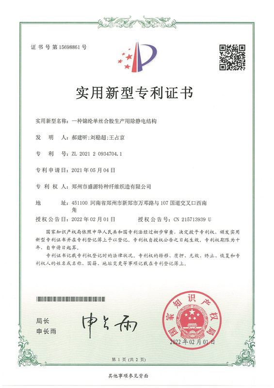 公司在技術(shù)創(chuàng)新領(lǐng)域成果斐然,截至目前,已累計獲得31項專利證書,涵蓋了特種纖維技術(shù)領(lǐng)域等多個方面。憑借刻苦鉆研的實力,榮獲“國家高新技術(shù)企業(yè)證書”、“武器裝備質(zhì)量管理體系認(rèn)證證書”、“鄭州市專精特新中小企業(yè)”、“創(chuàng)新型中小企業(yè)”等名譽。未來,公司將繼續(xù)加大研發(fā)投入,不斷探索創(chuàng)新,力爭在專利領(lǐng)域取得更多突破性的成果,為公司的持續(xù)發(fā)展和行業(yè)進(jìn)步提供強(qiáng)有力的技術(shù)支撐。
